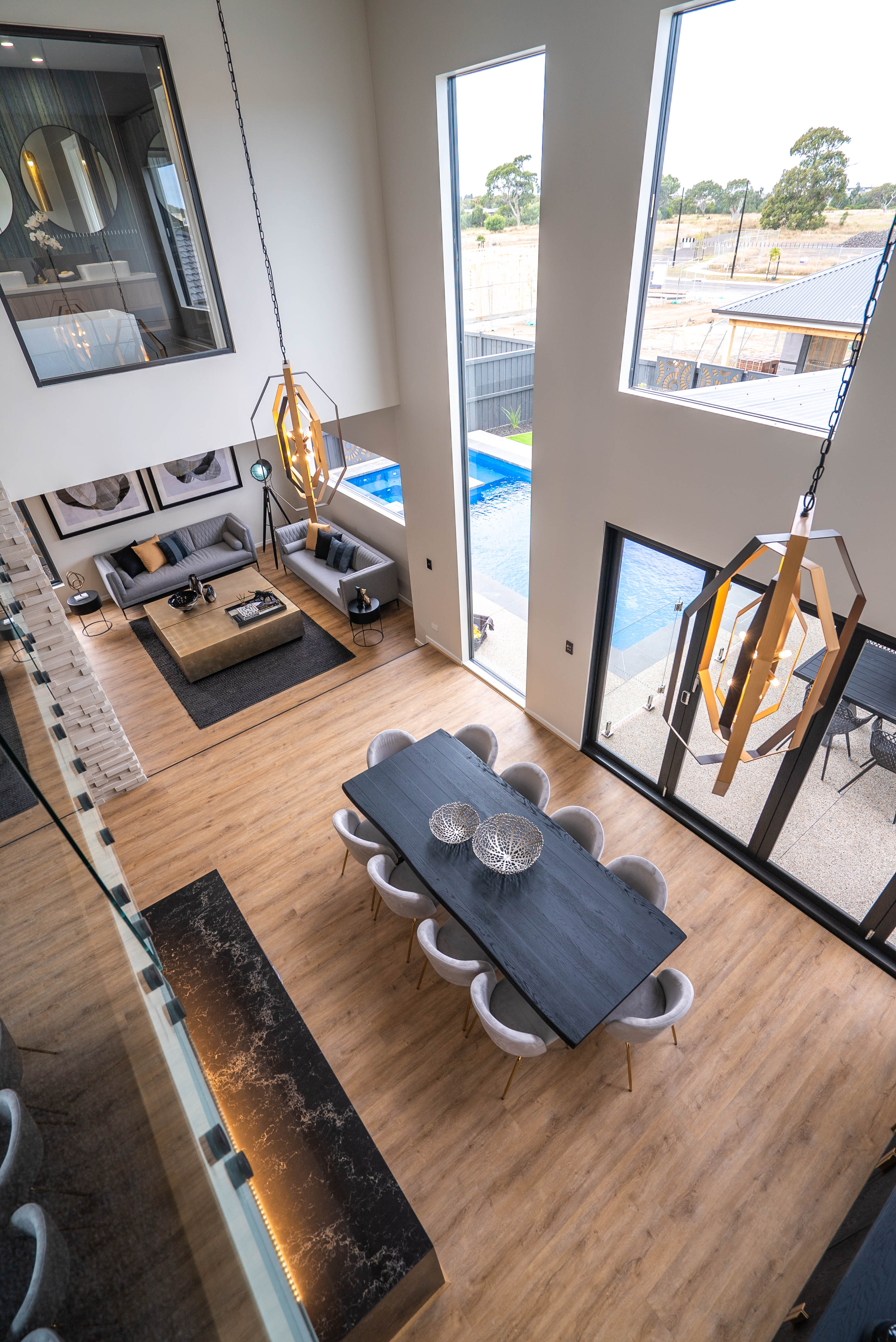 Designer Facade & Striking Street Presence: Architecturally detailed exterior, high-quality finishes, and commanding street appeal make this display a standout in Armstrong Estate.