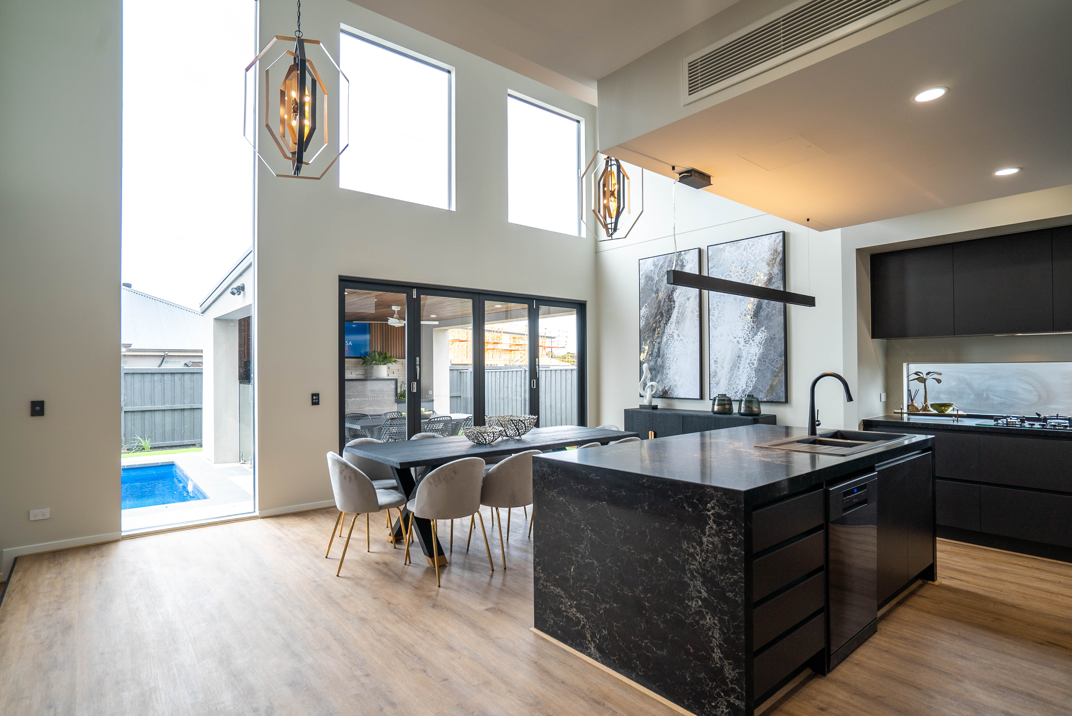 -Designer Kitchen: A true culinary centrepiece with top-tier fixtures and fittings, stone or premium benchtops, designer cabinetry with soft-close drawers, and high-end appliances. The kitchen seamlessly flows into the meals and living areas, offering a perfect balance of functionality and style.